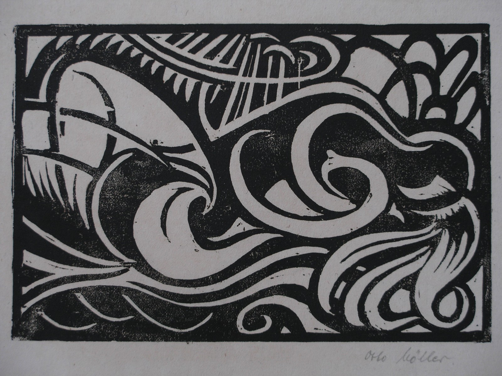u.r. eigenhändig handsigniert "Otto Möller 21"Technik:
