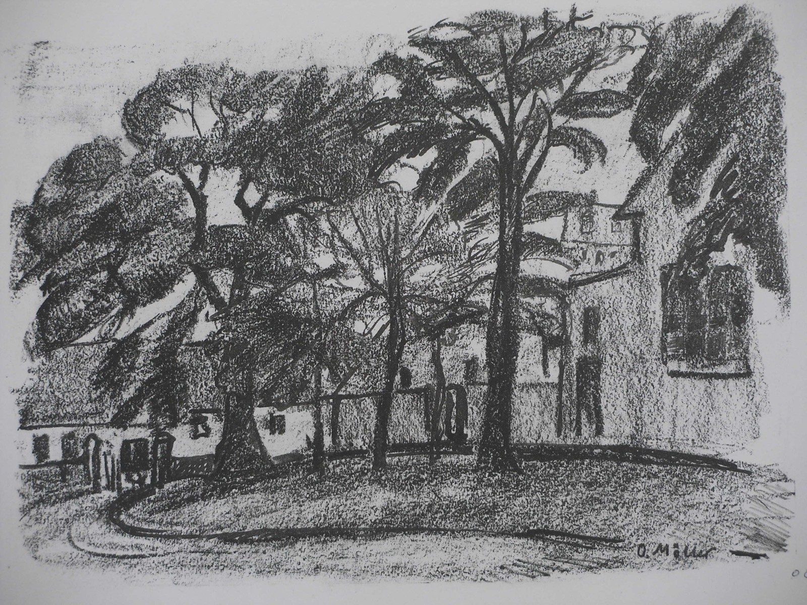 verso von MM bezeichnet, datiert und nummeriert "Park mit Häusern 1908-1/1 Li."