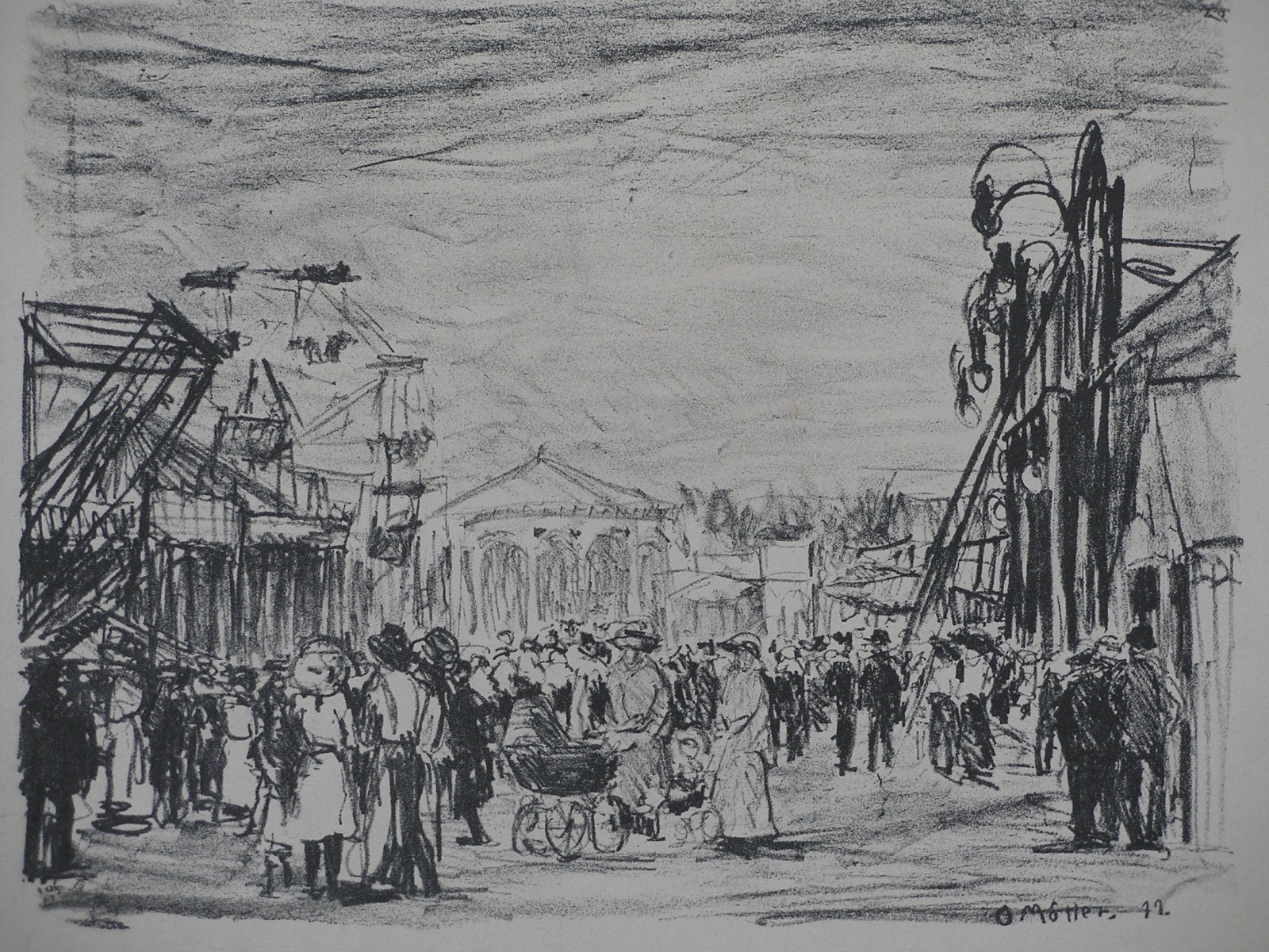 u.l. eigenhändig bezeichnet "Rummelplatz", u.r. im Stein "O Möller. 11" und u.r. eigenhändig handsigniert "Otto Möller"Technik: