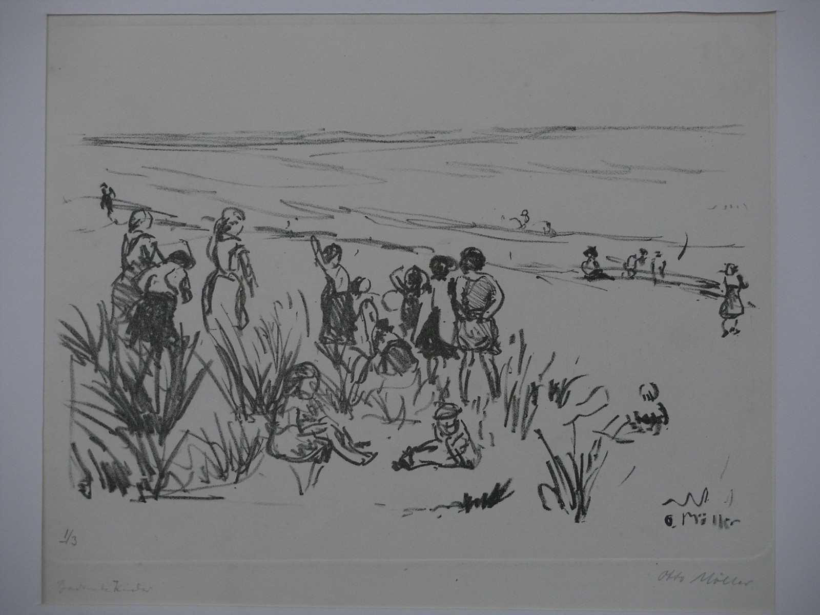 verso von MM bezeichnet, datiert und nummeriert "Badende Kinder 1912-2/8 Li 24 x 30 cm"
