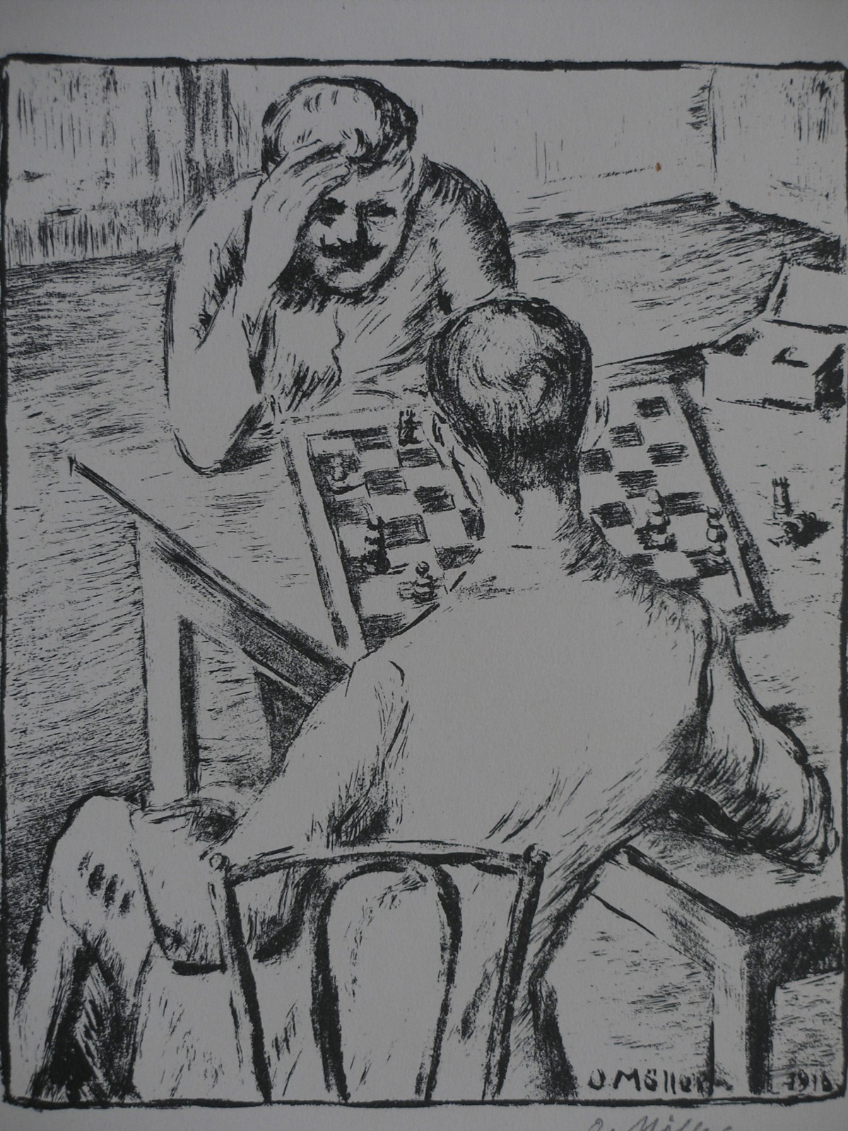 verso von MM bezeichnet, datiert und nummeriert "Schachspieler 1916 - 3/9 Li", verso o.l. Ecke mit Kleberesten