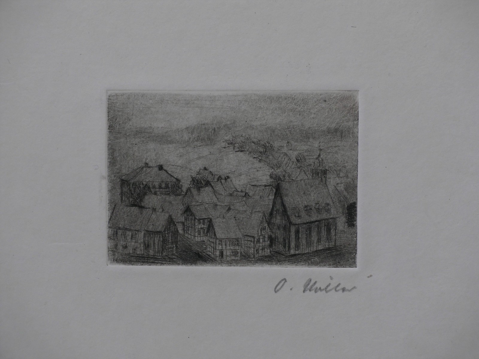u.l. eigenhändig bezeichnet "Dorf mit Kirche", u.r. eigenhändig handsigniert "O.Möller"Technik: