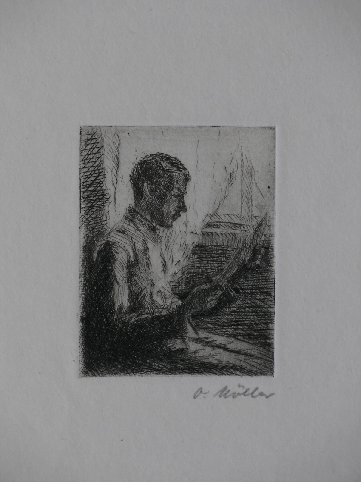 u.l. eigenhändig bezeichnet "Am Fenster" (Rudolf), u.r. eigenhändig handsigniert "O. Möller"Technik: