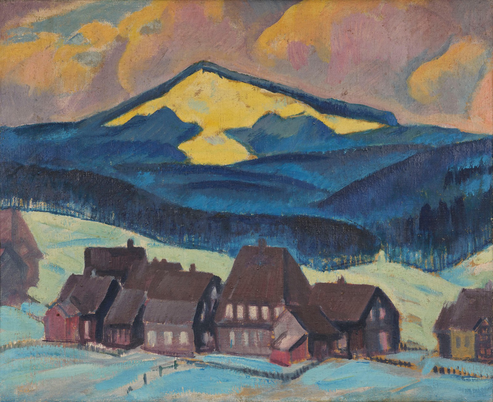 doppelseitig bemalt, verso Wasserfall, o.J.