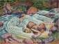 Wasserfall zwischen blauen Steinen