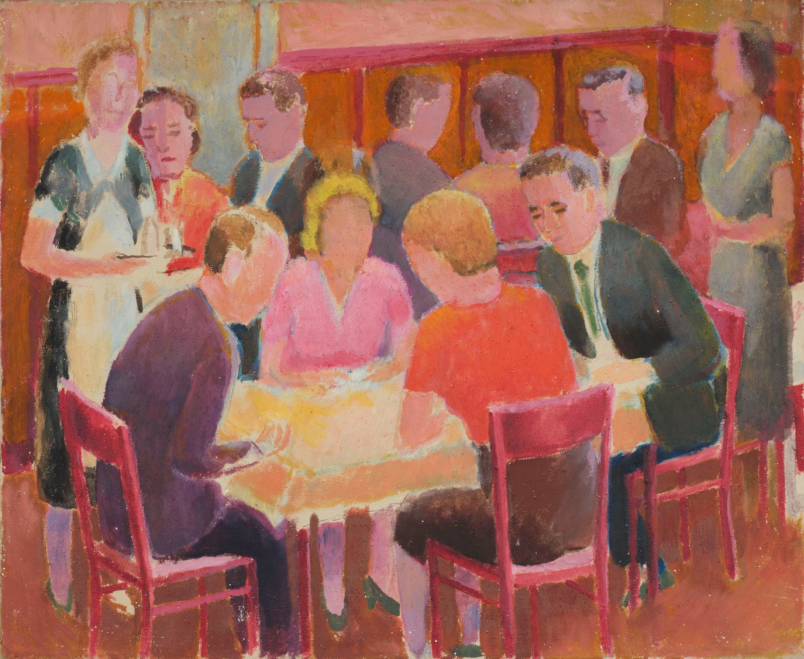 doppelseitig bemalt, verso gestreifte Katze vor Kachelofen, u.r. Otto Möller, ca. 1925