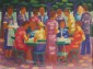 doppelseitig bemalt, verso Lwd. beschnitten, Gartengesellschaft