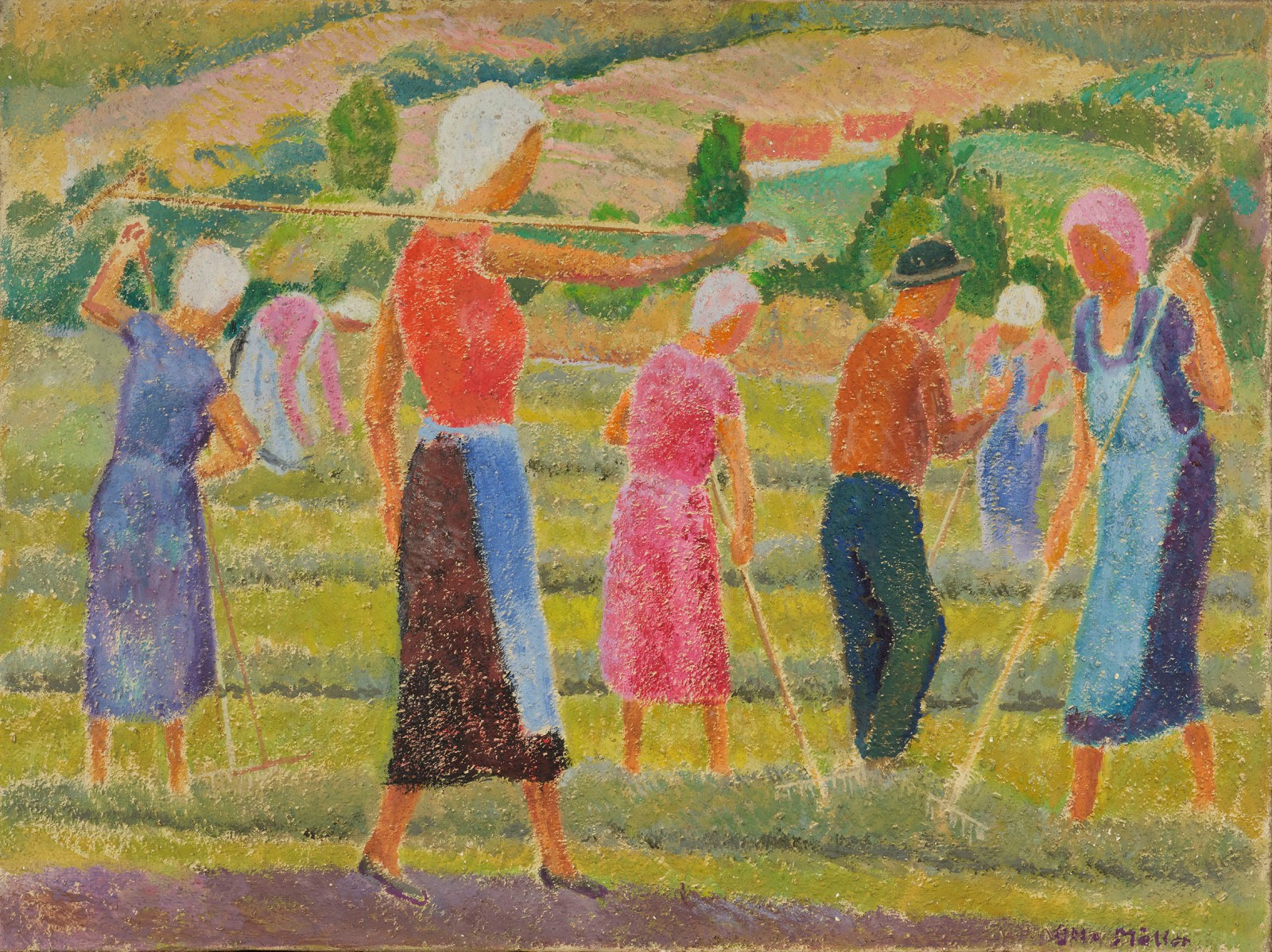 doppelseitig bemalt, verso Rigaer Frauen, übermalt