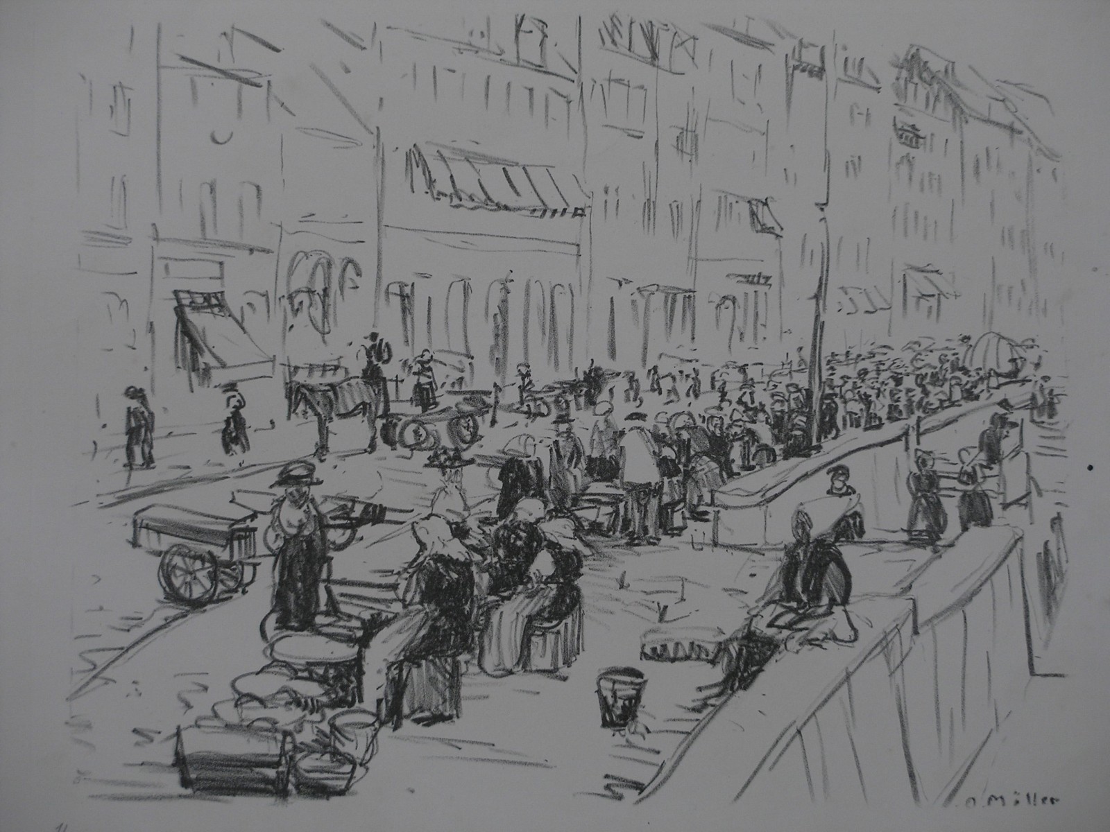 verso von MM bezeichnet, datiert und nummeriert "Fischmarkt-1911-2/2 Li", o.l. und o.r. Ecke Klebereste