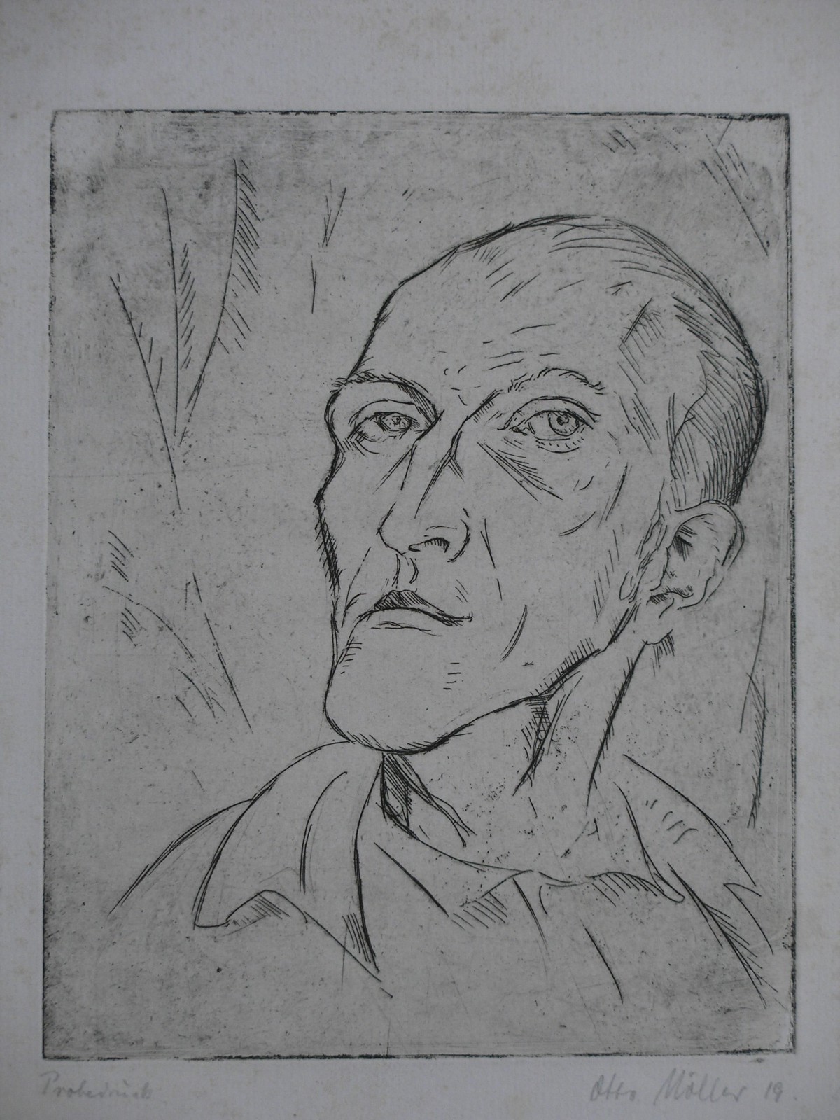 u.l. eigenhändig bezeichnet "Selbstporträt", u.r. eigenhändig handsigniert "Otto Möller 1919" und u.l. eigenhändig bezeichnet "Probedruck"Technik: