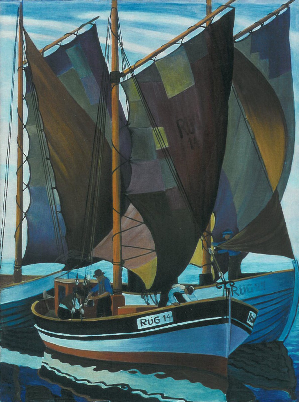 Drei Segelboote mit geblähten Segeln