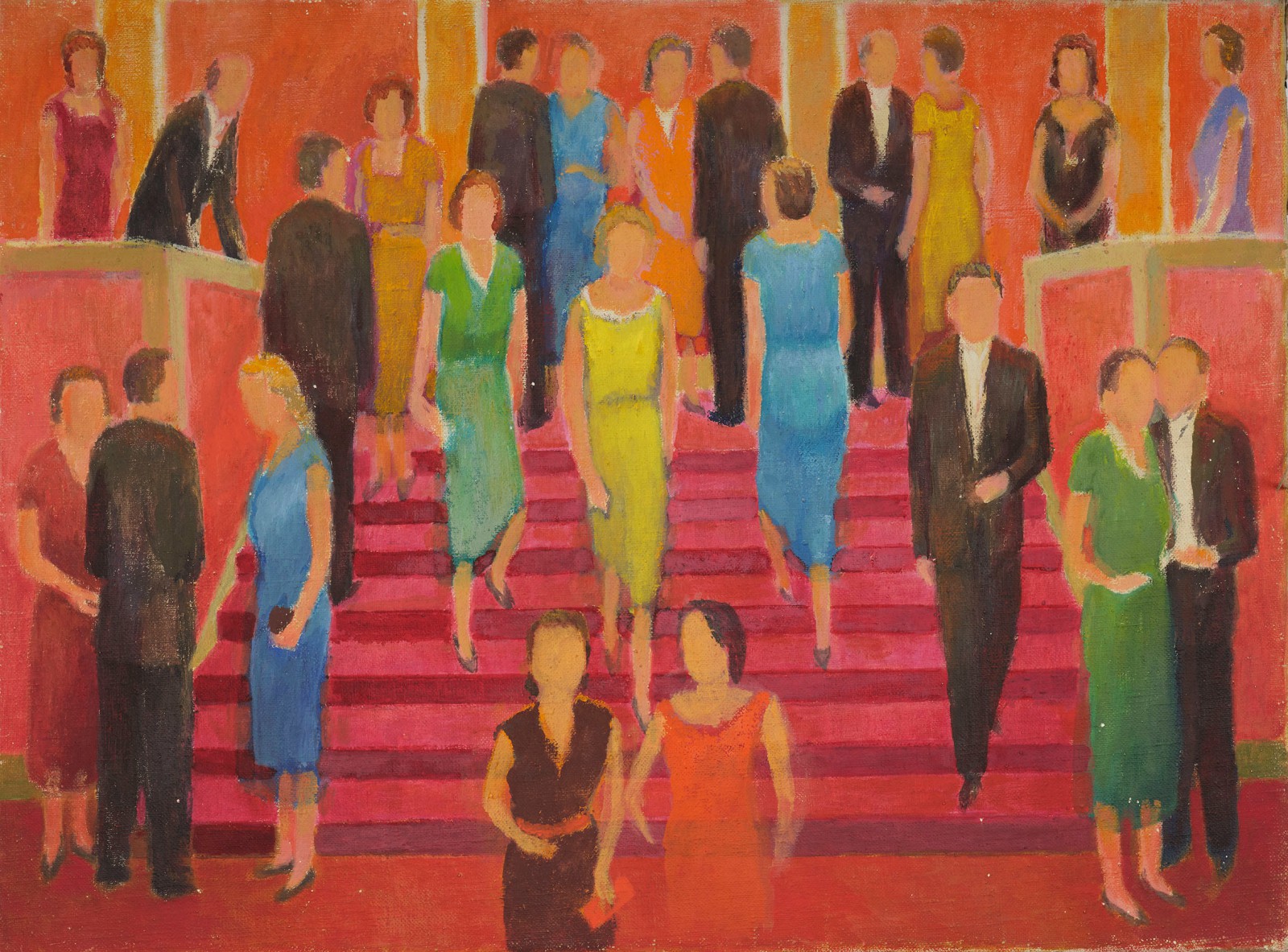 doppelseitig bemalt, verso Lwd. beschnitten, Gartengesellschaft