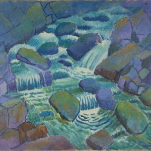 Wasserfall zwischen blauen Steinen